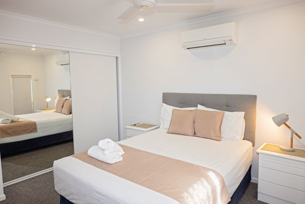 1 Bedroom has a Queen Bed upstairs and a comfortable space on one level compiling of a lounge / couch, TV, air conditioning & a full kitchen, including a washing machine and dryer. The Two Bedroom Consists of another two single beds. This unit can suit the whole family.