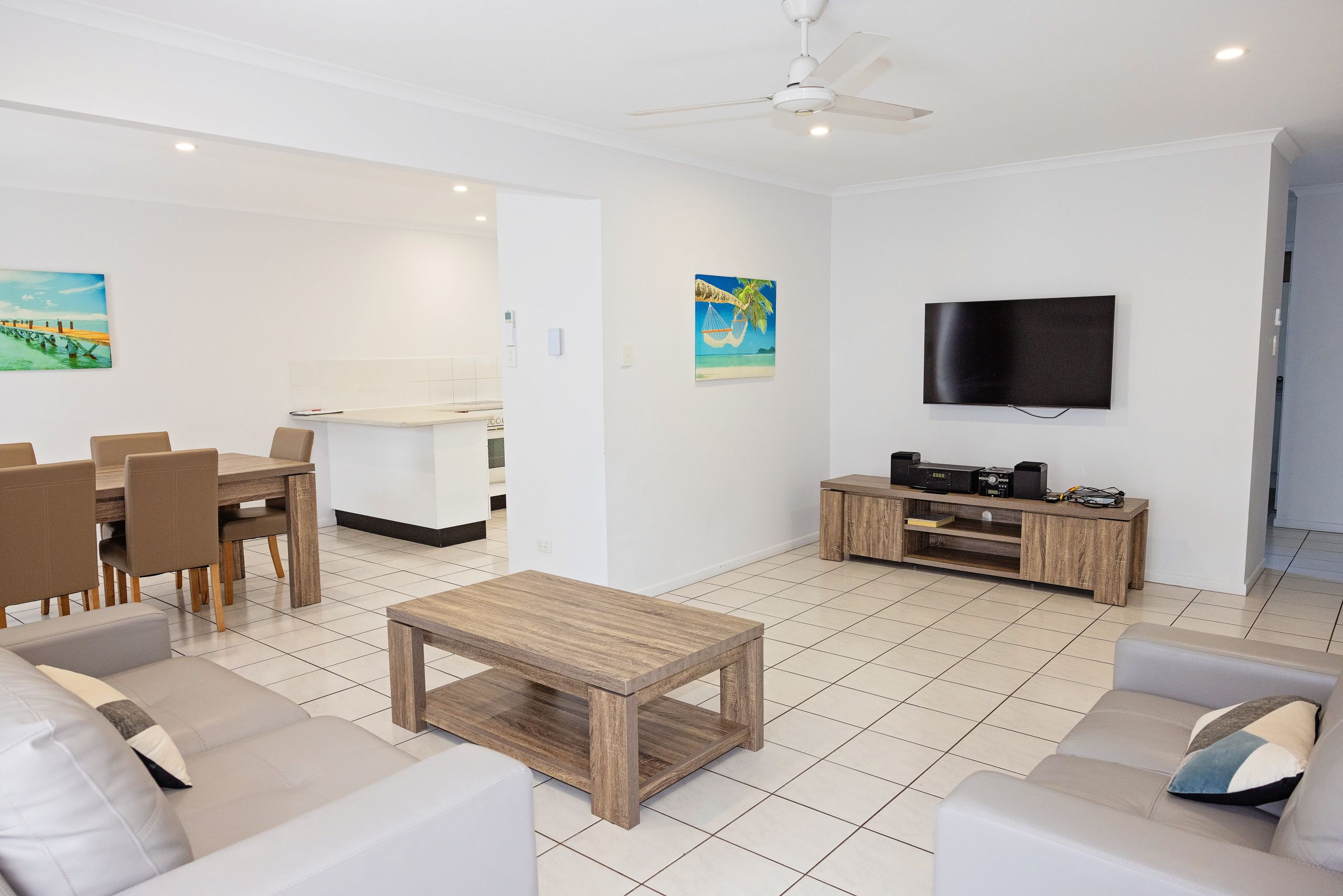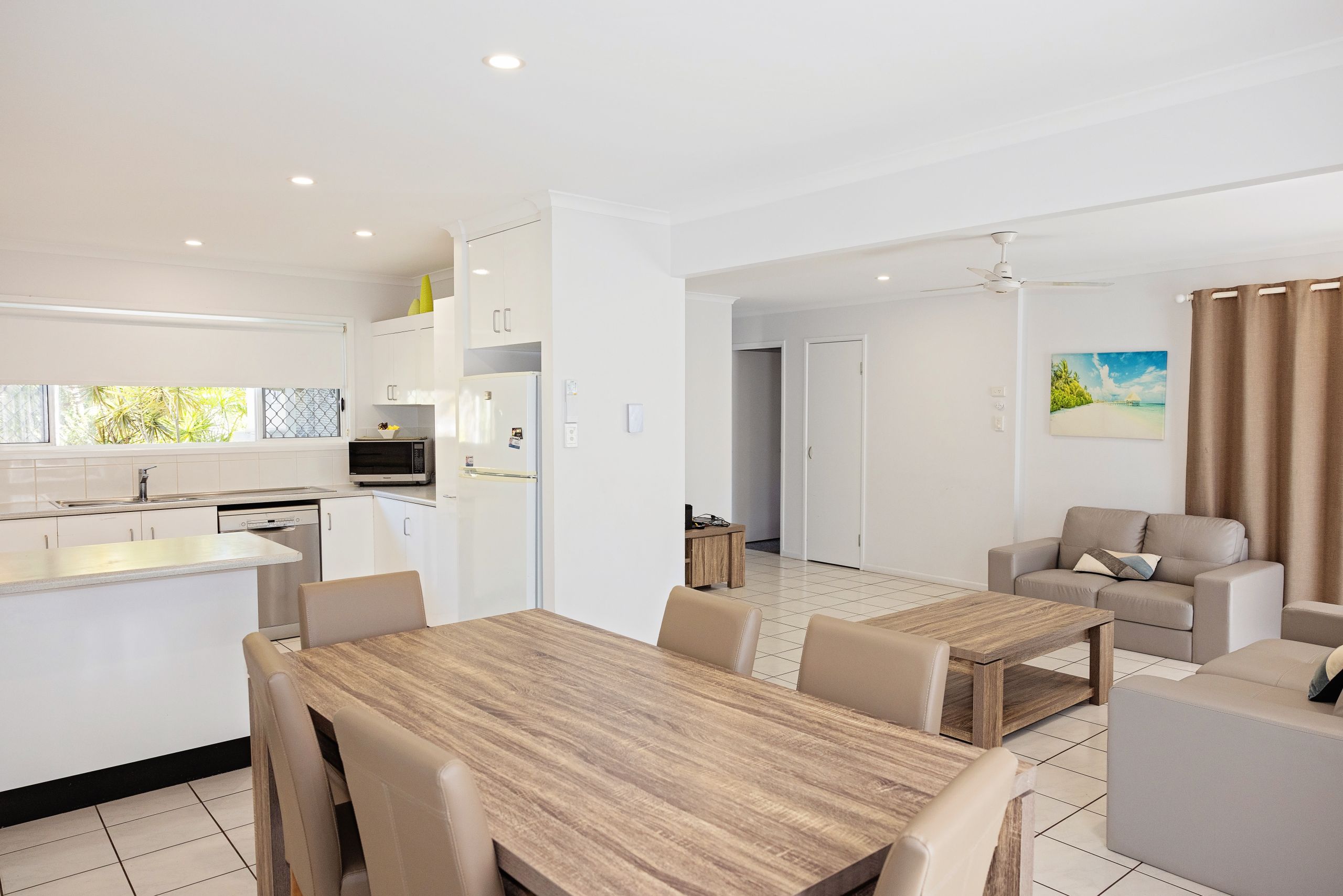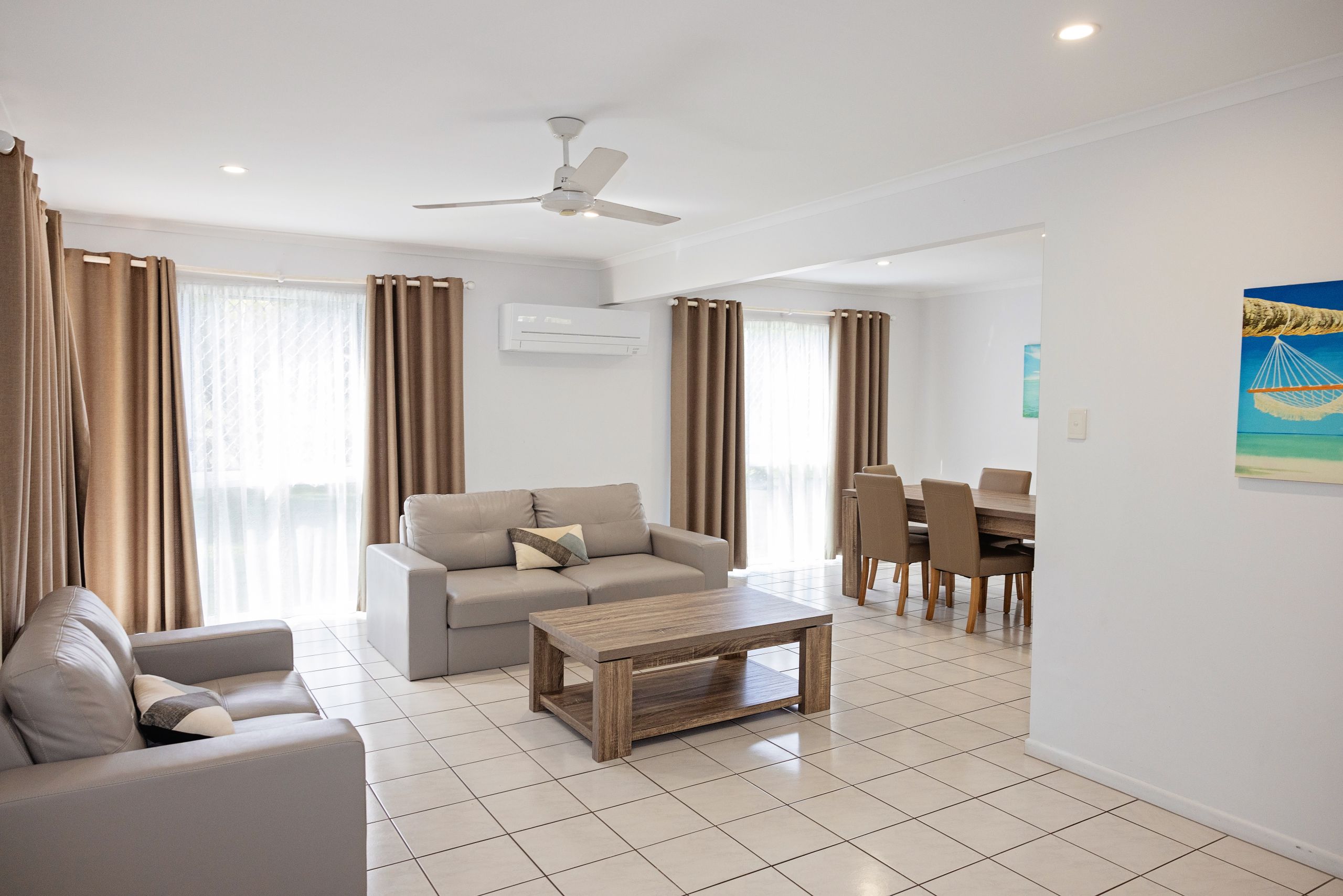 Our comfortable ground-floor one and two-bedroom villas at The Shores are thoughtfully designed for easy, relaxed living ideal for couples, families, or friends looking for a coastal escape. Each villa features a fully equipped kitchen, open-plan living and dining area, air conditioning, and a private patio where you can enjoy the sea breeze and tropical surrounds.